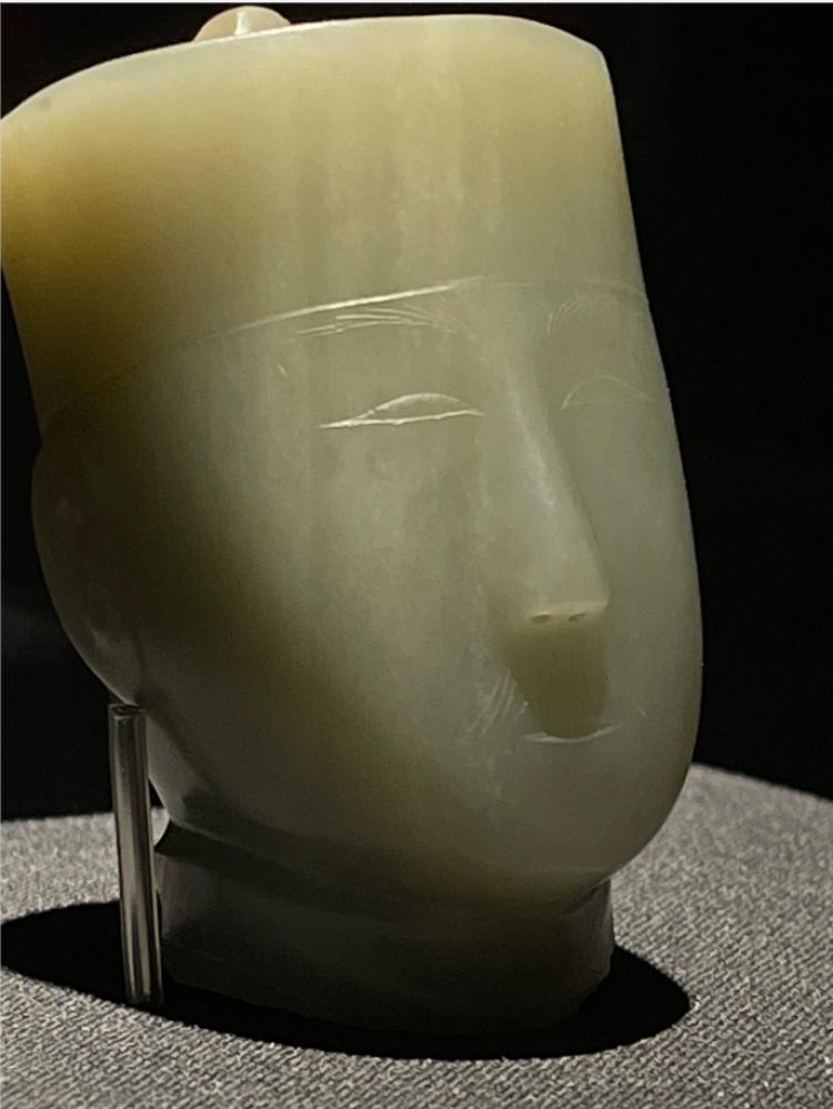 汉代部分还有两件非常出色的玉雕玉器,都是咸阳博物院的藏品。一件是圆雕玉俑头,它是用和田玉做的,相对说在全国各个博物馆的藏品当中还是非常的稀有的;还有一件是玉辟邪,它的玉质取材非常好,用的是白玉,那么这两件展品也是非常重要的文物。