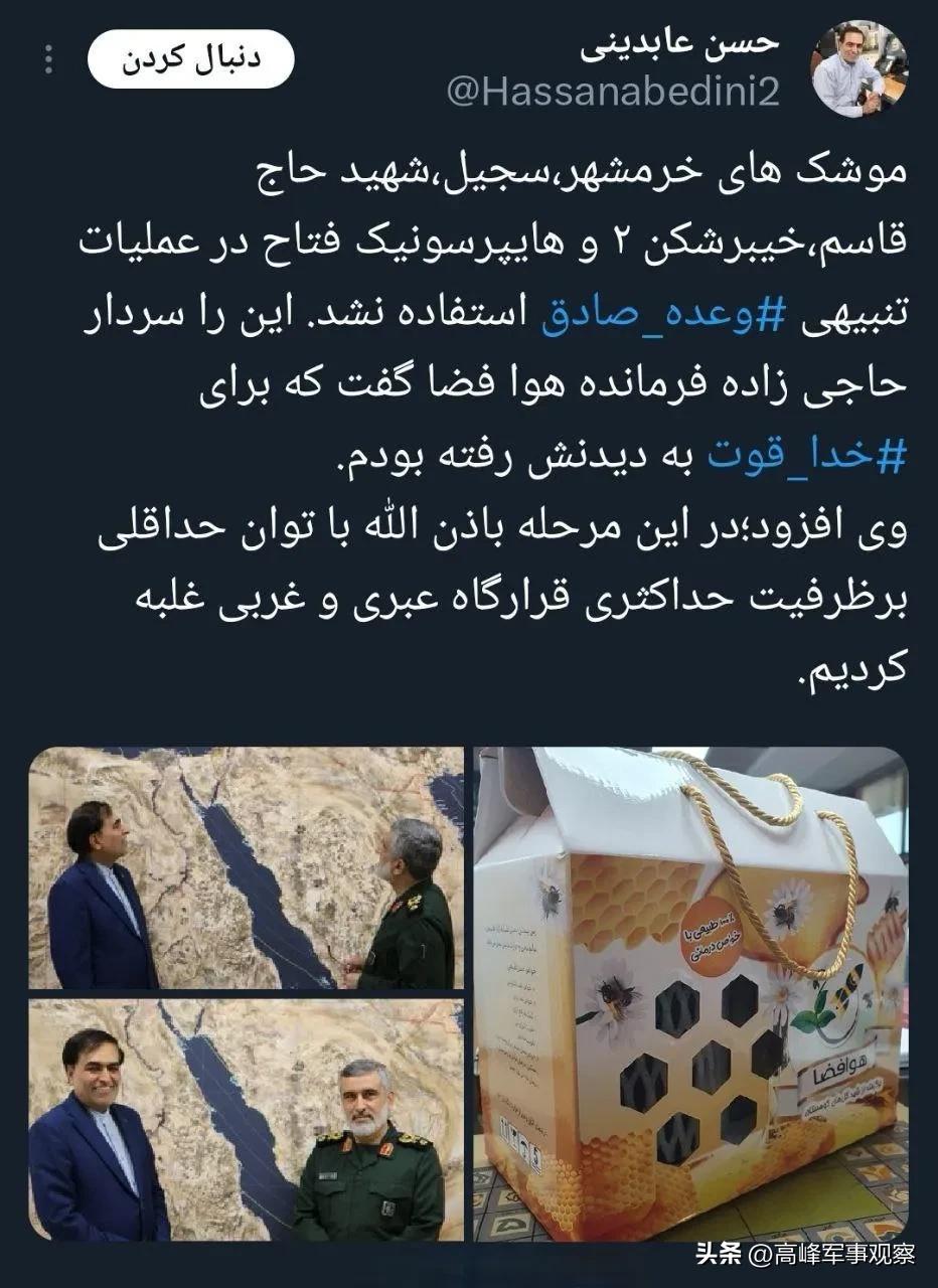 目前不清楚伊斯法罕地区发生距离爆炸的具体位置,是否像以色列军方威胁的那样是伊朗的“核设施”?如果是,那么后果将不可想象,以色列本土将迎来更惨烈的导弹打击。伊朗革命卫队空天军司令阿米尔·阿里·哈吉扎德准将在接受记者采访时表示,在对以色列的惩罚行动中,我们尚未使用“霍拉姆沙赫尔”弹道导弹、“萨吉尔”弹道导弹、“哈吉·卡西姆”弹道导弹、“法塔赫”高超声速导弹等新式武器,仍然是以最小的力量克服了以色列和西方阵营的最大能力。