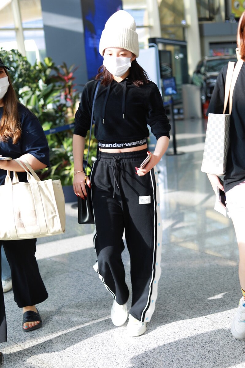 张雨绮的这组穿搭,除了一顶米白色的针织帽有点突兀以外,服装的搭配还是比较潇洒时尚的。一身黑色系的运动装,散发着满满的活力,也是清纯范十足的搭配。想要减龄又有活力的风格,运动装的搭配就不错,而且穿起来更加舒适大方,对身体的包容性也会更强一些。