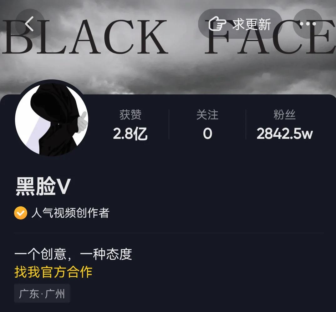 大概有好多网友发现了,之前抖音上近三千万粉丝的技术流网红黑脸V现在好少看到他的消息及其视频了,平时刷抖音时也很少刷到他的推荐视频。