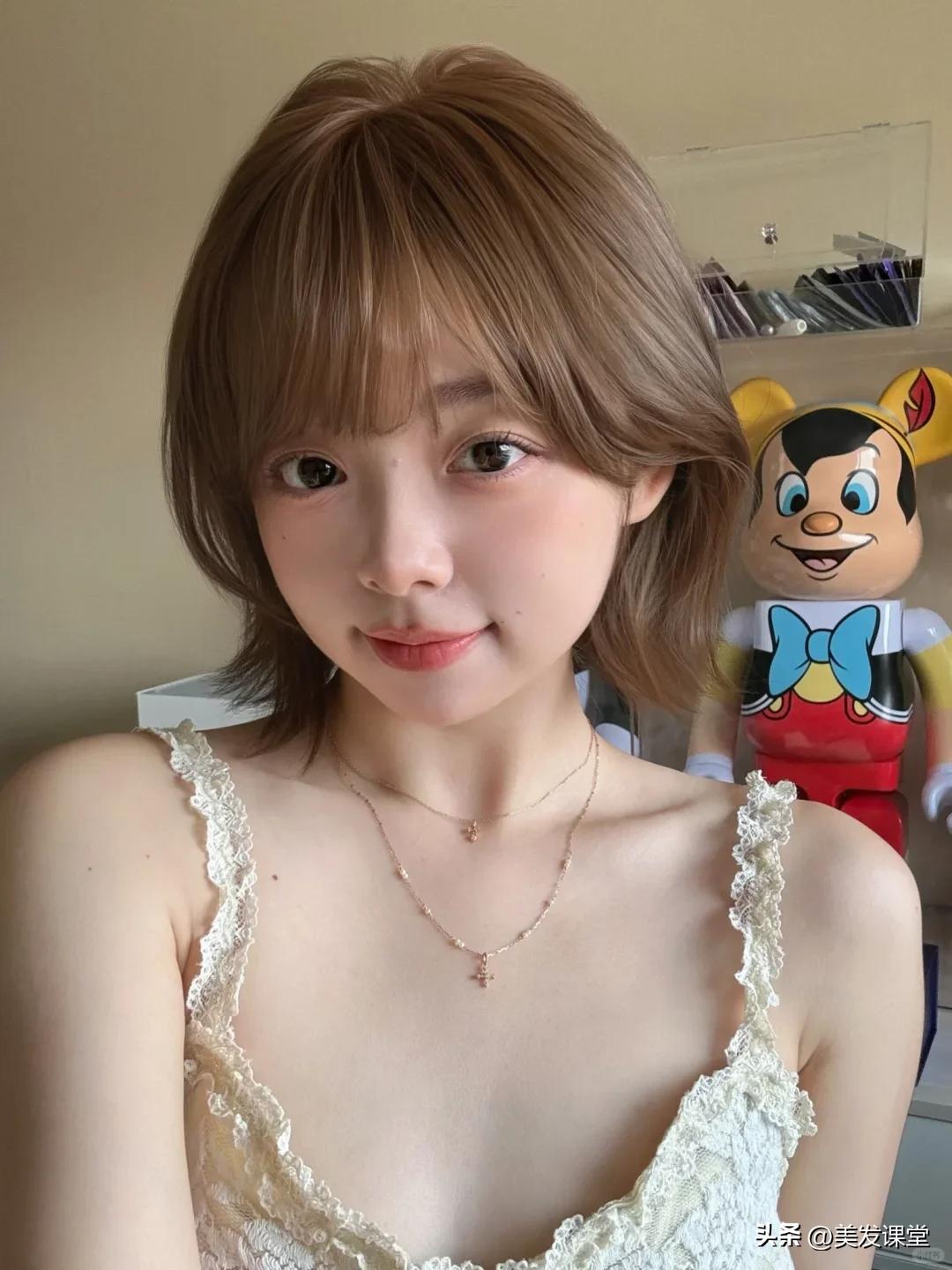 如果圆脸和颧骨高,脸方的小姐姐希望通过发型修饰脸型的姐妹们,不要错过这一款发型,这种发型不仅适合各种场合,而且很好搭配很多衣服 ⭕️专业建议:两侧根据发量和脸型一定要剪刘海,可以适当放长一点,前面的刘海到眼睛和眉毛中间略微有点遮眼的感觉,不建议剪得太厚重,两侧八字刘海前短后长,鬓角可以掖到耳后,搭配后脑勺修剪的层次显得十分饱满有型「初恋妹妹头」减龄魔法全解析|一秒重返18岁的秘密武器 ✨