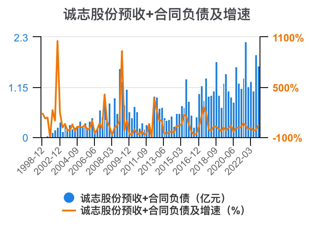 诚志股份预收+合同负债,2022-12期数据为1.65亿元。诚志股份预收+合同负债及增速,2022-12期数据为42.3%。