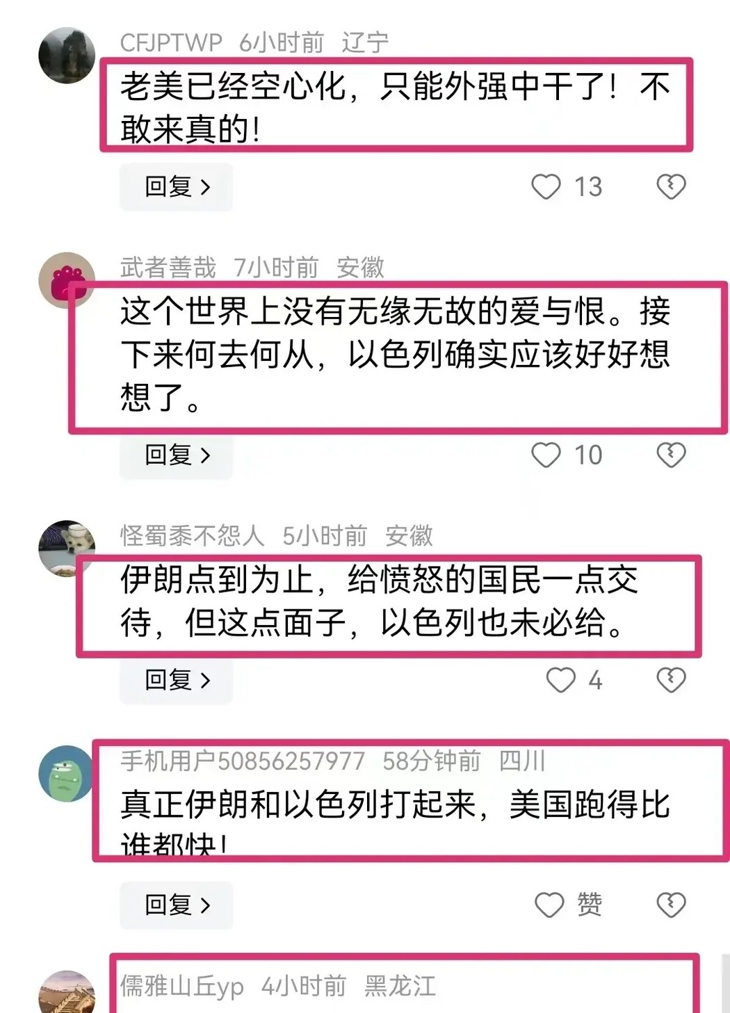 网友们对这事儿也是看法各异。有的说,以色列该好好掂量掂量了;有的感叹,还是中国安全;还有的说,哈梅内伊这回是真怒了。大家你一言我一语,讨论得不亦乐乎。