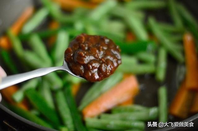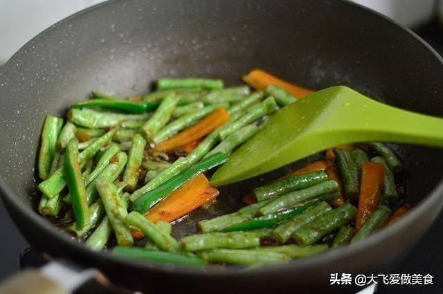 【大飞有话说】:豆角一定要多煸炒一下,不然有夹生的。