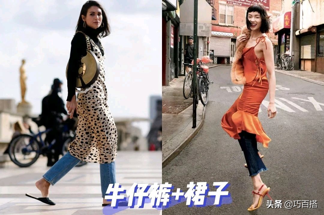 最小心机的是牛仔裤+裙子的叠穿,因为牛仔裤的颜色包容性很强,我们利用撞色穿法,增加造型的时尚吸引力,回头率更高!