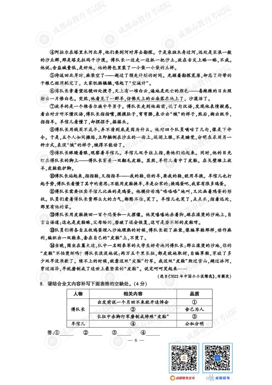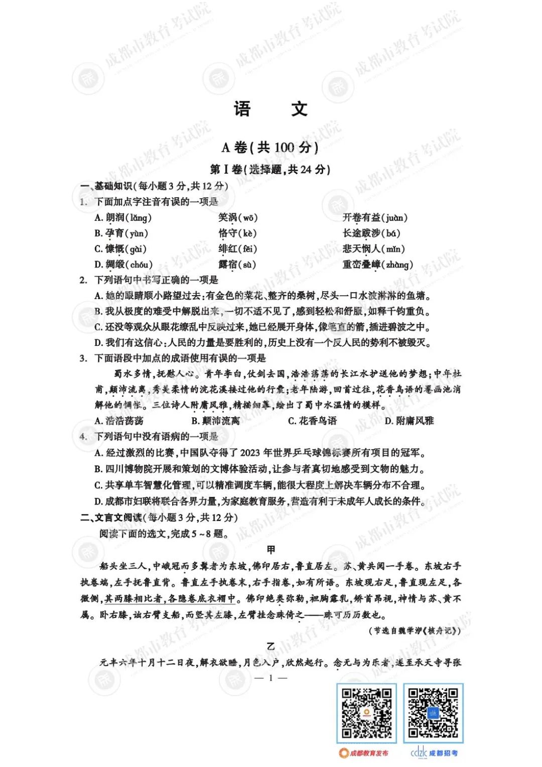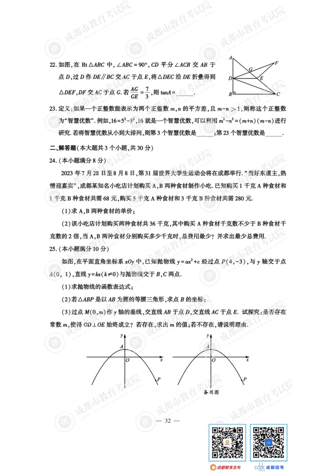2023年成都中考试题及参考答案发布
