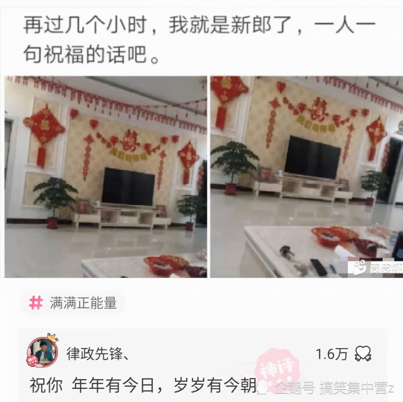 【搞笑回复四】再过几个小时,我就是新郎了,一人一句祝福的话吧。