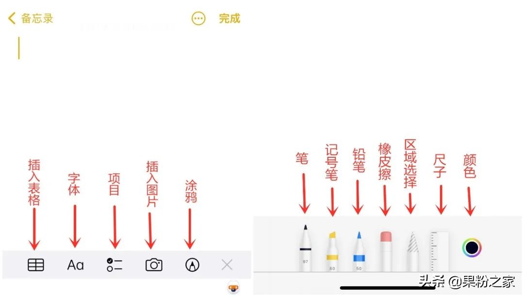 事实上,备忘录并不只是一个做笔记的小软件,你还可以在上面进行绘画。相信大家都曾在网上刷到过大神在备忘录上绘画的“巨作”吧,看到他们的作品,小编(果粉之家)才发现,自己与大神的差距真的不是一星半点。