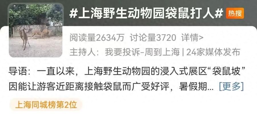 热闻|游客在野生动物园被袋鼠打了,网友:我被扇过一耳光……园方最新回应