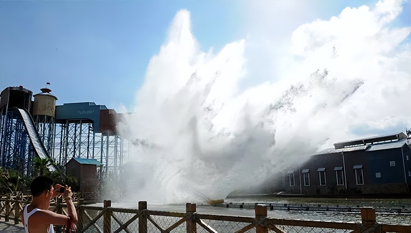 慢慢开到最高点,然后一下子下来,激起水花。第一排的朋友,小心眼睛被水花拍疼,可能会湿身。