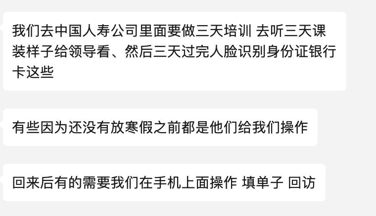 李磊说,他和很多同学都报名了,然后组团到中国人寿那边去听课培训,一共培训3天时间。