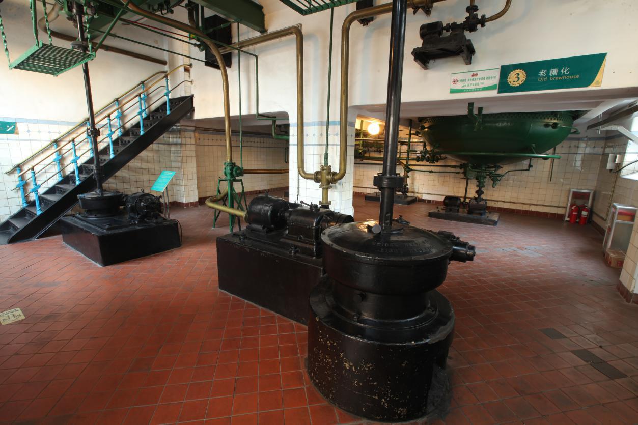 1903年的糖化车间,所展示的糖化锅都是德国进口、德国工匠用紫铜手工打造,单锅产量9吨。老糖化车间到1995年之后就不再使用,目前这四口紫铜锅是国家一级保护文物。
