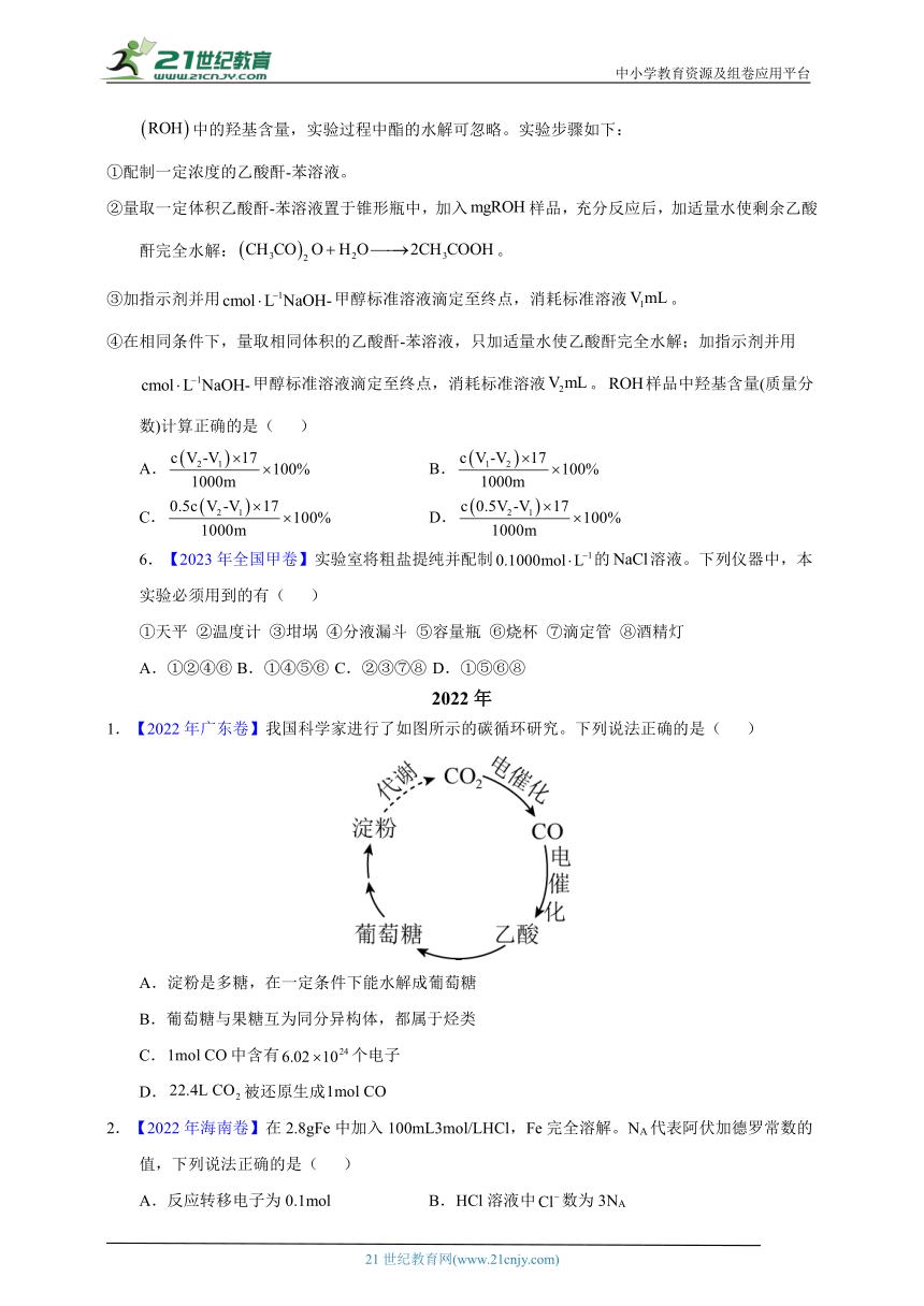 2023-2021三年高考化学真题分类汇编 专题四 化学计量(原卷版).doc