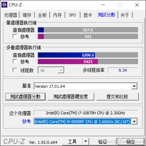 CPU-Z测试,性能无限接近桌面第九代酷睿i9-9900KF处理器