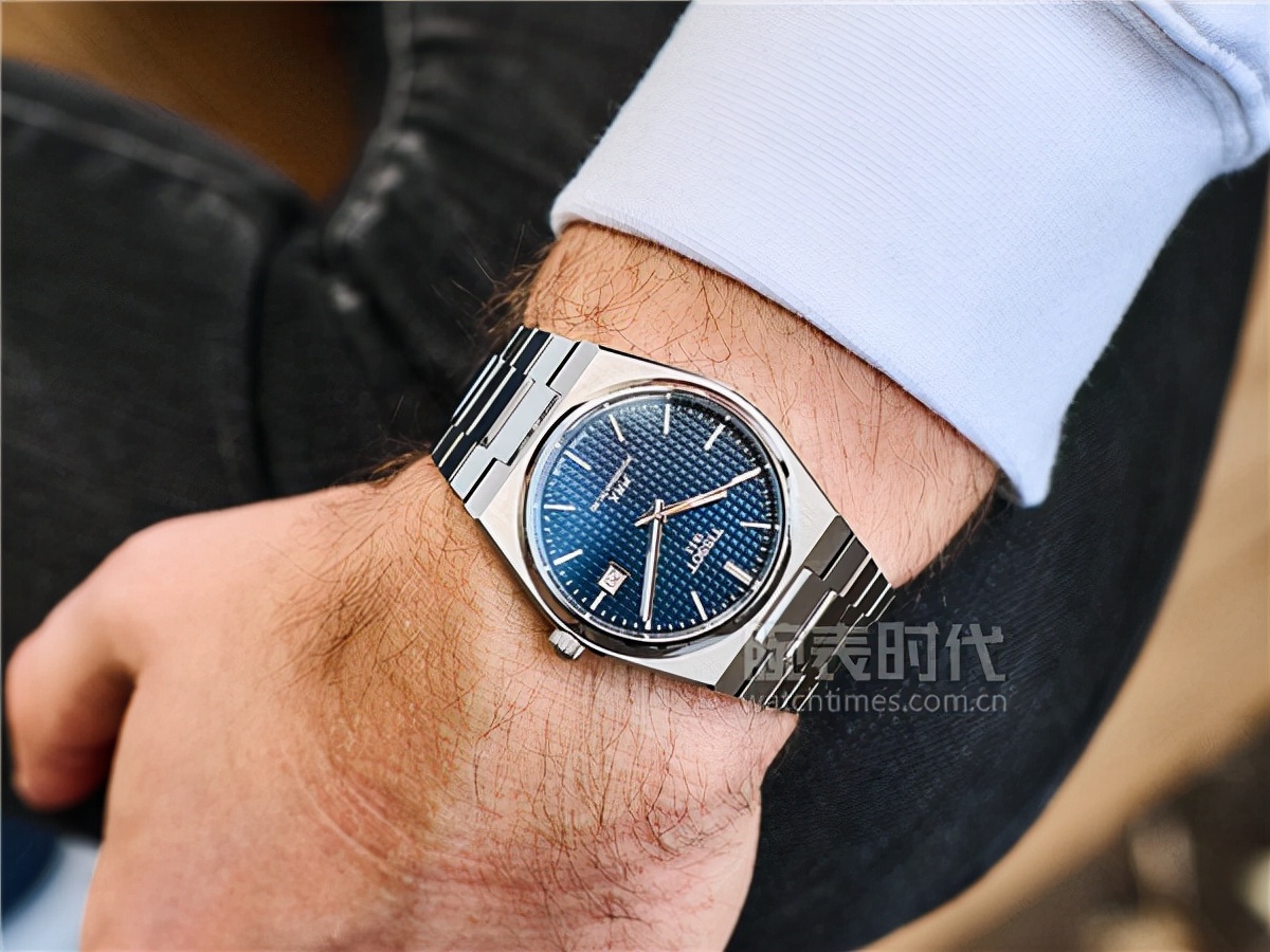 其实单单从颜值来说,在天梭全新PRX系列刚刚发布的时候,我认为颜值最高的是蓝盘石英款,深邃经典的蓝色表盘饰有放射状太阳纹,灵动时髦,而且有点劳力士蚝式热门蓝盘DJ的味道。
