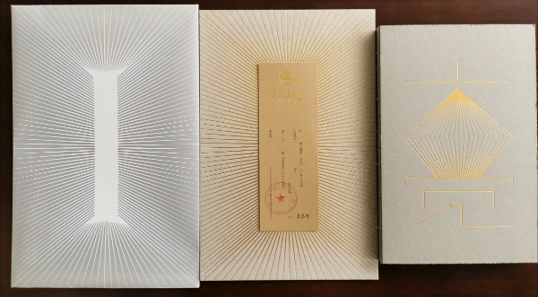 最后是烫金,因为各种灰板对金色的吸收程度不一,溶解度有差异,烫金效果也大不相同,在一位有着近20年工艺经验的老师傅指导之下,经过多次尝试才成功匹配到合适的颜色。