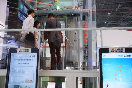 2016中国国际电梯展 永大电梯现场演绎“溜梯自救”