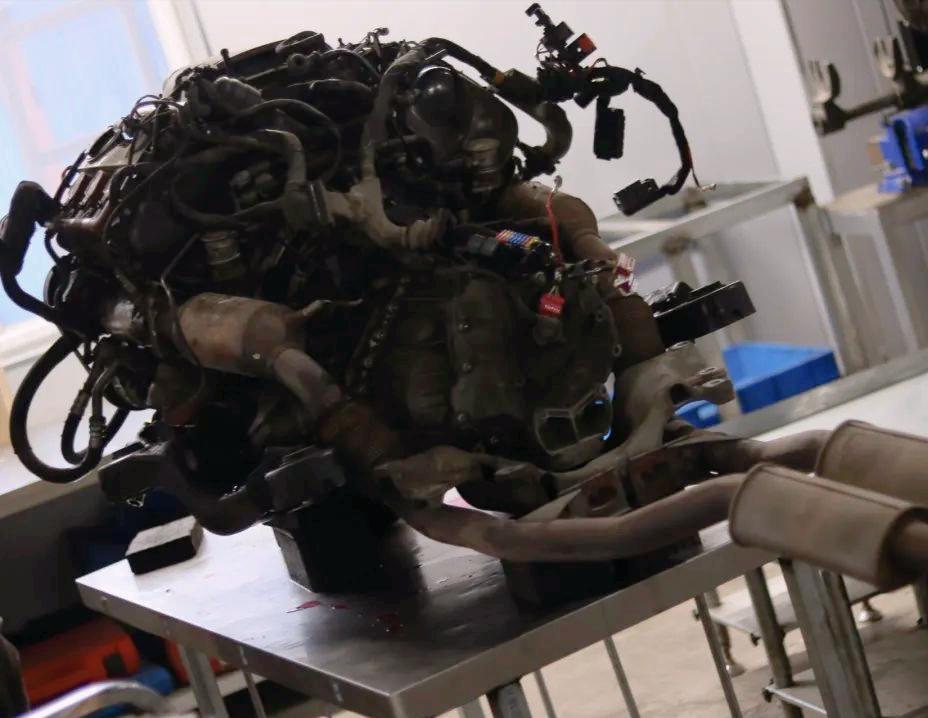 发动机所有的老化管路拆除后,先做一遍清洗。