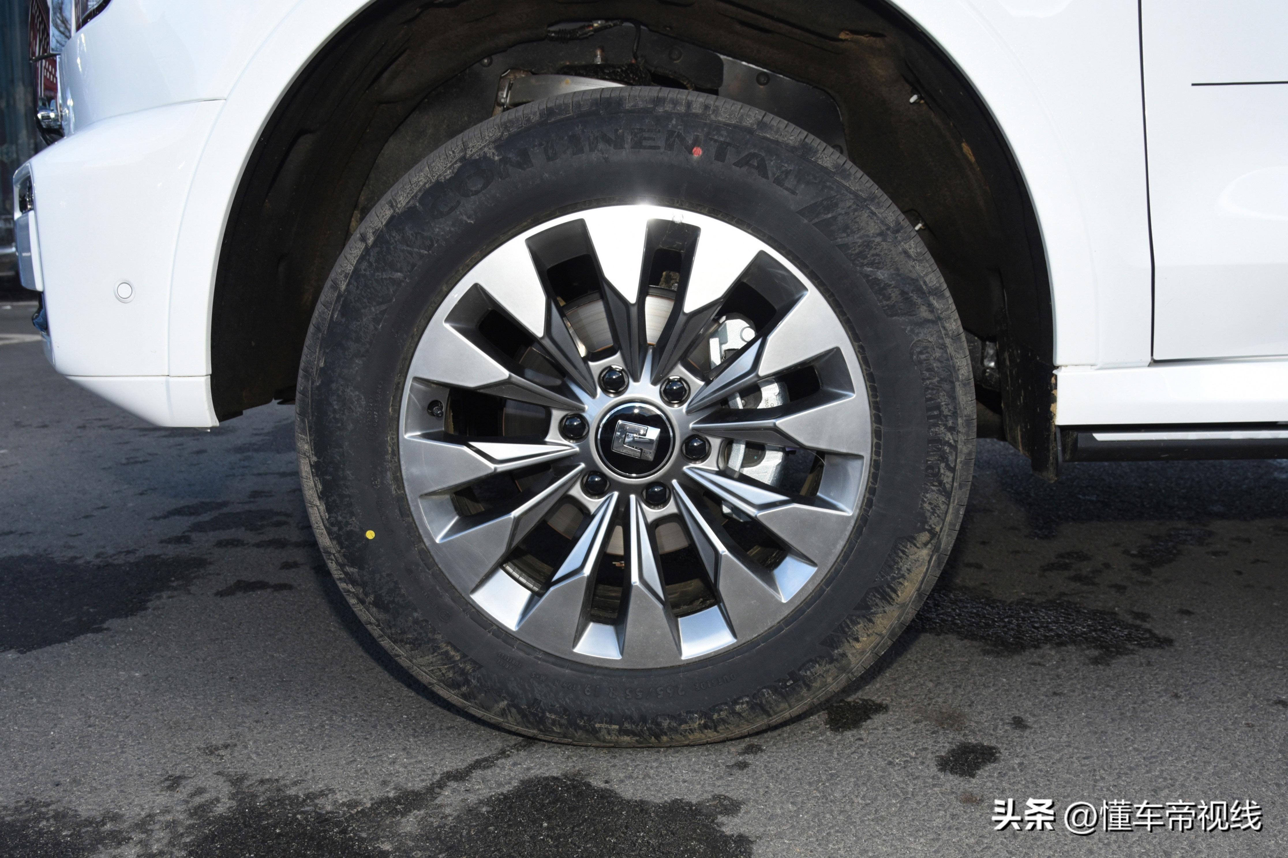 新款坦克500继续提供多种造型轮辋,实拍车型原厂配备了规格为265/50 R20的马牌UC6系列轮胎,单条轮胎市场售价超过2000元。在便利性配置方面,新款坦克500配备了自动伸缩脚踏板、无钥匙进入和上车把手等。
