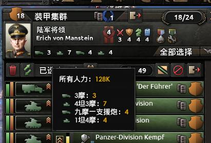 其中装甲师、机动化部队共18个,全部挑出来成立一个机动集团军,将领可以选择曼施坦因、古德里安或者隆美尔都没有问题。