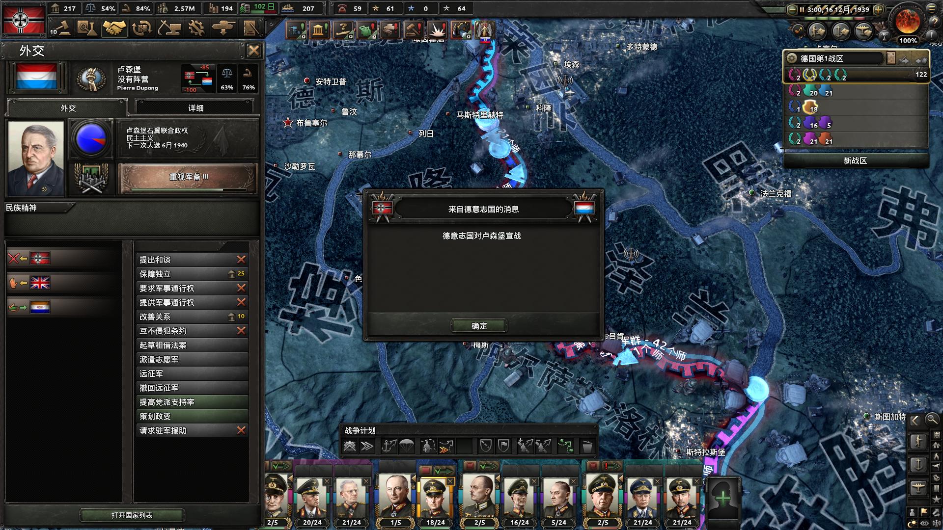 1939年12月16日凌晨3点,希特勒等不及了,于是在这个比历史上早了6个月的时间同时向荷兰、比利时、卢森堡宣战,开启了曼施坦因计划。