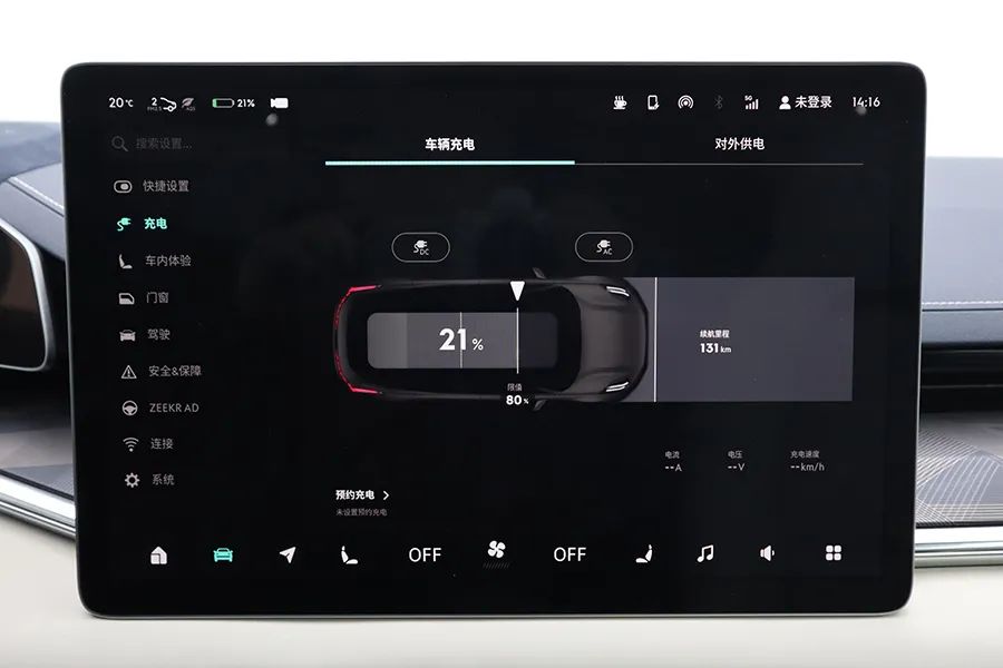 这辆车配有一块15.4英寸中控液晶屏,所有车辆设置和控制,都可以在车机内完成。车机是通过Linux底层开发,尽管搭载了骁龙的7纳米8155芯片,但说实话,系统优化并不是非常流畅,部分功能的开启会出现卡顿情况。采用了卡片式菜单管理,但因为车机功能过于庞杂,菜单选项卡也非常多,所以要熟悉各个功能,需要一个漫长的过程。