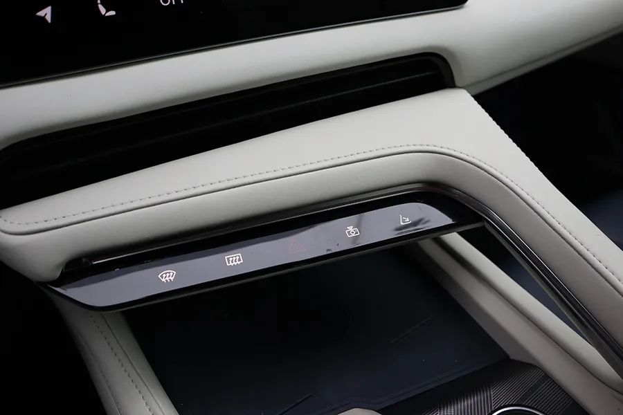 方向盘全系皮质包裹,全系都配有方向盘记忆及电动四向调节,高配车型还配有方向盘加热。此外,方向盘多功能按键,不仅有虚拟按键,而且还带有两个触控板。就像笔记本电脑的触控区,有振动反馈,支持滑动操作,但中央位置没有盲键定位,所以需要较长时间来适应。