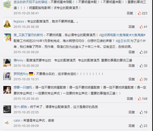 再来看当时,也就是2015年10月26日,《大鱼海棠》开始寻找配音并通过微博询问大家想听谁的声音。