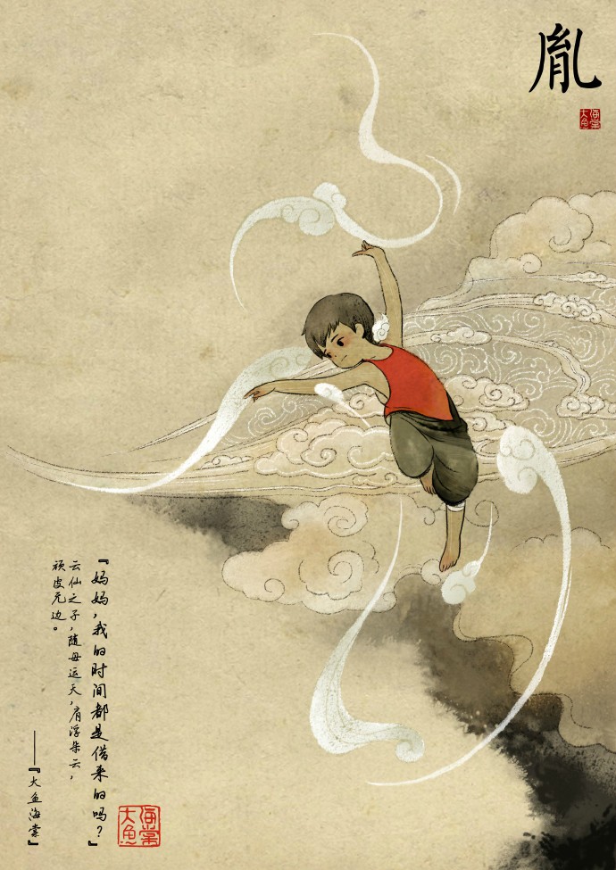 胤,云仙之子,随母运天,肩浮朵云,顽皮无边