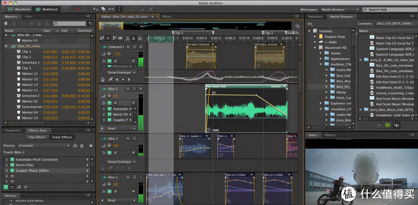 新的Magnetic Timeline“磁性时间线”可令多条剪辑片段如磁铁般吸合在一起。同样,剪辑片段能够自动让位,避免剪辑冲突和同步问题。Clip Connections片段相连功能可将B卷、音效和音乐等元素与主要视频片段链接在一起,Compound Clips可将一系列复杂元素规整折叠起来,Auditions则可将多个备选镜头收集到同一位置,循环播放来挑选最佳镜头。还支持后台渲染,可编辑从标清到5K的各种分辨率视频,载入视频素材后,系统可在用户进行编辑的过程中,自动在后台对素材进行分析,根据媒体属性标签、摄像机数据、镜头类型,乃至画面中包含的任务数量进行归类整理。功能非常强大。