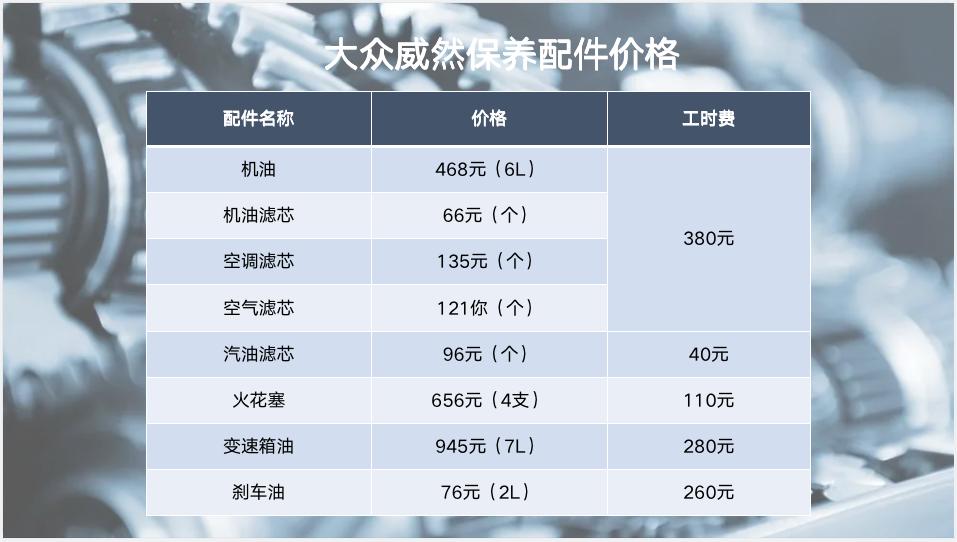 前两次的保养均为常规保养,仅需更换机油和机油滤芯即可,所以花费较少,算上工时费仅需915元。从下面的表格中不难看出,威然的配件价格不算贵,标号为0W-20的原厂全合成机油每次需要加注6升,费用为468元。非原厂全合成机油的价格大概在260元/桶左右,每次需要加注一桶半,其实算下来也差不了多少钱,如果图省心的话推荐使用原厂机油。威然保养时的工时费也在合理范围内,比如更换变速箱油的工时费是280元,换汽油滤芯的工时费只要40元,大体上看还是比较亲民的。通过计算得知,威然六万公里总共的保养费用是9825元,对普通家庭来说没有太大的压力。