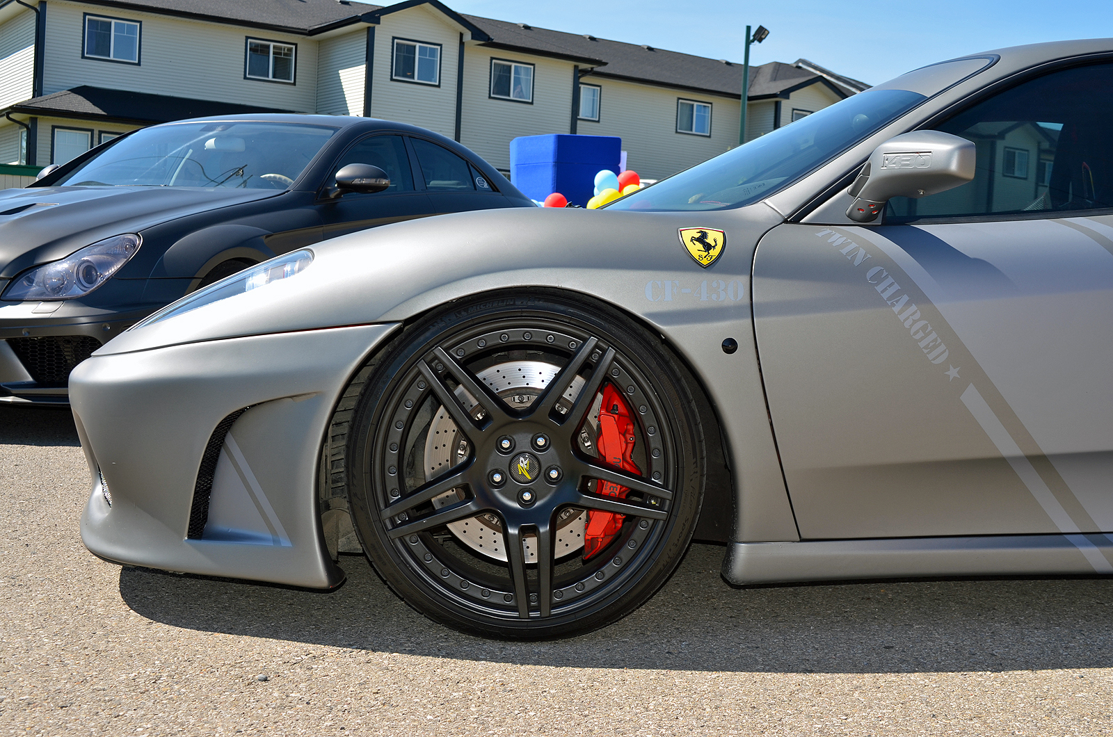 此外,该团队还带来了他们的战斗机主题的法拉利F430和之前设计的宽体梅赛德斯 - 奔驰CLS55 AMG。F430拥有NOVITEC罗索双增压器,产生707马力,并戴着一个匹配的NOVITEC的车身套件和轮毂。CLS55 AMG戴着金色ADV1车轮,Kleeman改装主机,产生640马力。