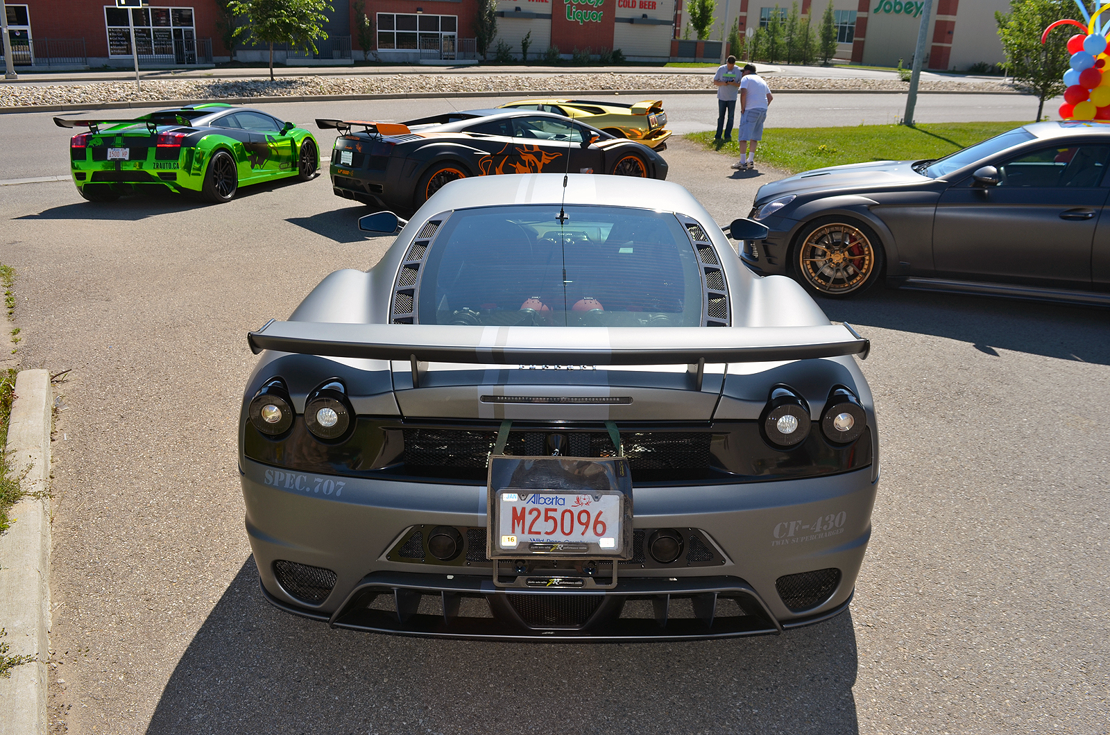 Calgary异国情调的汽车性能店,ZR汽车,最近他们难以置信的超级跑车的五个小队参加了Airdrie,Alberta省,由车主的一个朋友举办的特别活动。该Heffner双涡轮增压蓝博基尼Gallardo分别增长前沿和中心旁边的金铬兰博基尼鬼怪VT特别版,全部由ZR自己改装。无论是Gallardos戴上由IMSA特制的宽体套件,匹配IMSA轮毂,排气以及车身部件相匹配。绿色盖拉多燃油产生1750马力,黑色和橙色盖拉多产生1500马力。