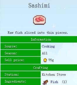 星露谷物语stardew valley生鱼片怎么做 生鱼片菜谱