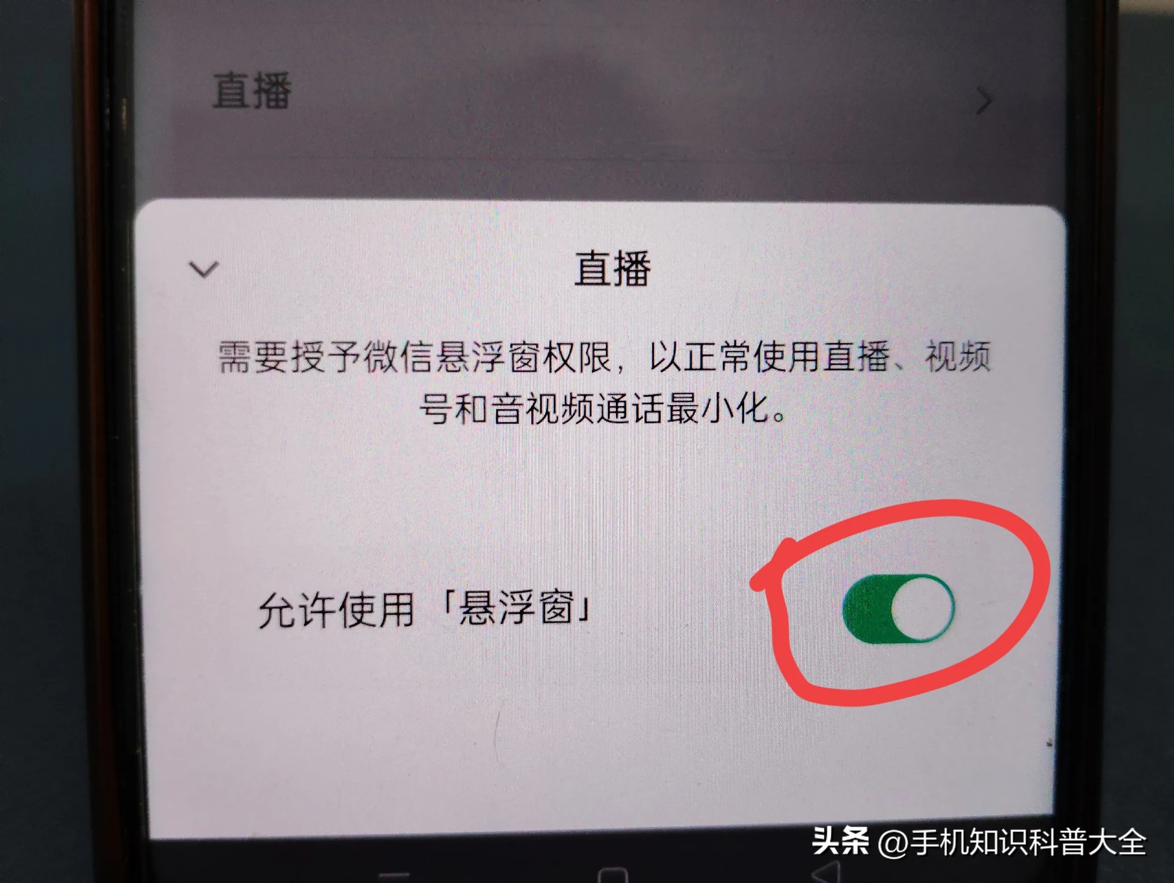 微信的一些功能可以使用悬浮窗,比如聊天,聊天中可以最小化的是语音及视频聊天。着都是需要授予微信悬浮窗权限,才可以正常使用的,确保允许使用悬浮窗即可。(如上图所示)