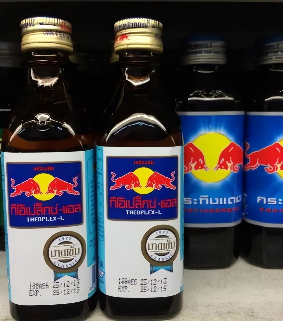 这款名为Krating Daeng(注:泰语“红牛”)的饮料,是泰籍华人许书标与1975年研制成功的。