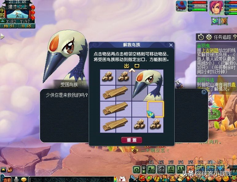 找到受困鸟族对话后,会出现3种情况:直接完成、战斗、华容道小玩法。
