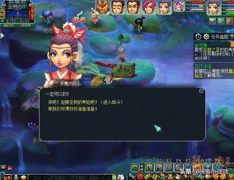 小灵鹤带着我们在凤栖之梧四处遨游时,碰到了一撮金凤族人,这群人聚集在一起好像是要打架,我们赶忙前去劝架,触发本任务第二场战斗。