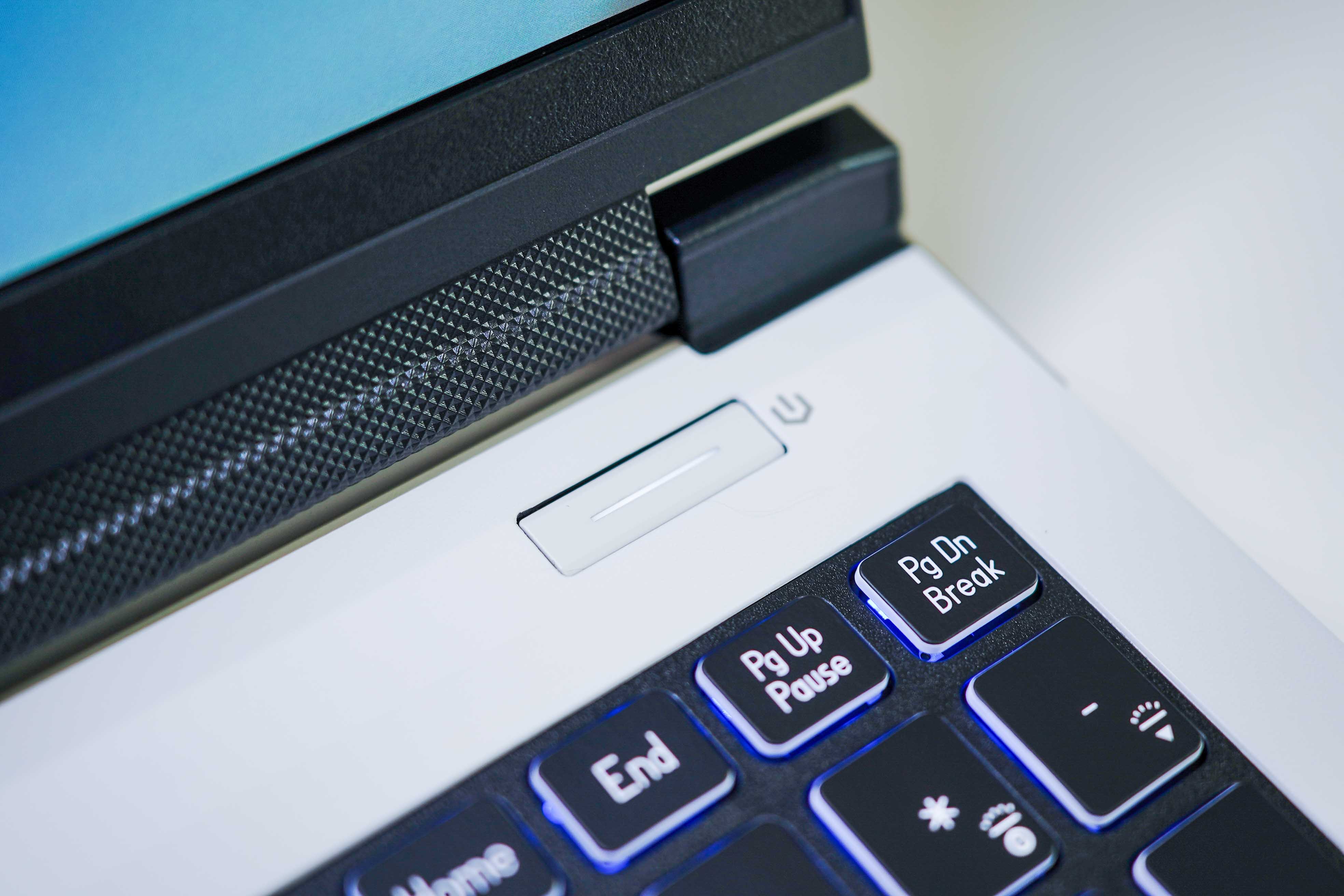 需要注意的是电源键,全新笔记本正常需要接入原装的DC供电器才能开机,并且开机是长按电源键,切记切记。
