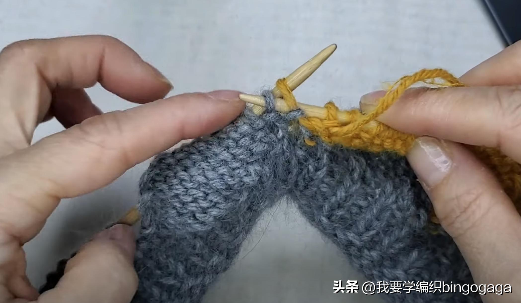 起针数需要是8的倍数,A线起了80针,先织6圈正针;第7-10圈:重复(1反,1正)织完整圈。第11圈:先织2正,翻面,线上挑1,1反;翻面,正挑1,2正;翻面,线上挑1,2反;翻面,正挑1,3正;翻面,线上挑1,3反;翻面,正挑1,4正;翻面,线上挑1,4反;翻面,正挑1,5正;翻面,线上挑1,5反;翻面,正挑1,6正;翻面,线上挑1,6反;翻面,正挑1,7正;翻面,线上挑1,7反。