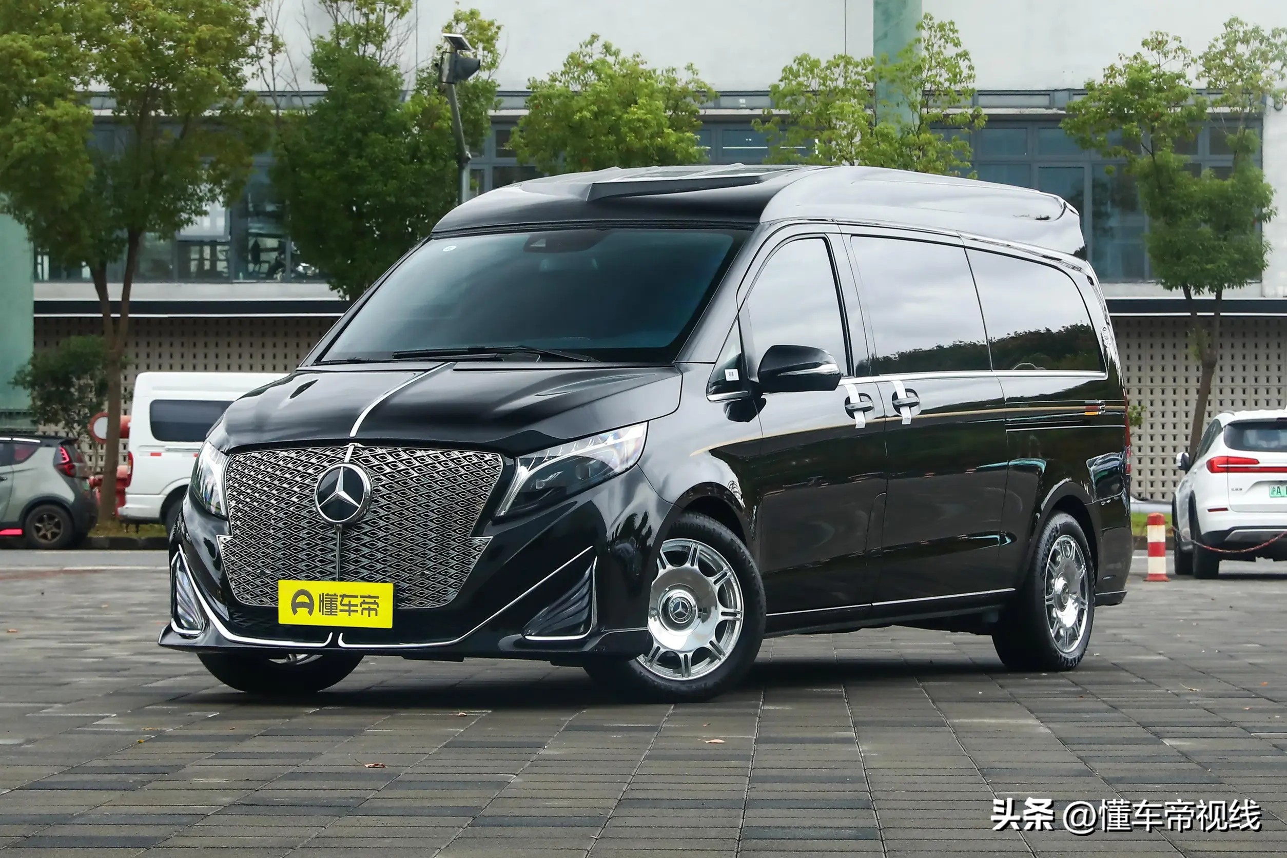 以2025款克蒂圣姆峰MH7 33周年纪念版车型为例,该车前脸升级有倒梯形大尺寸前格栅,前格栅内部使用镀铬点阵细节填充。同时这款车取消奔驰车标,并换装新造型车头立标。