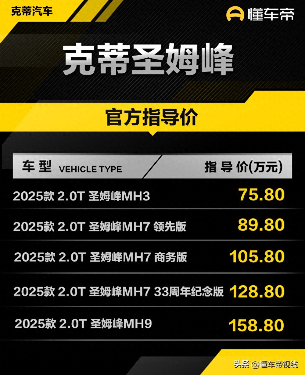 新车 | 售75.8万元起 2025款克蒂圣姆峰上市 2.0T中大型MPV/可选4座