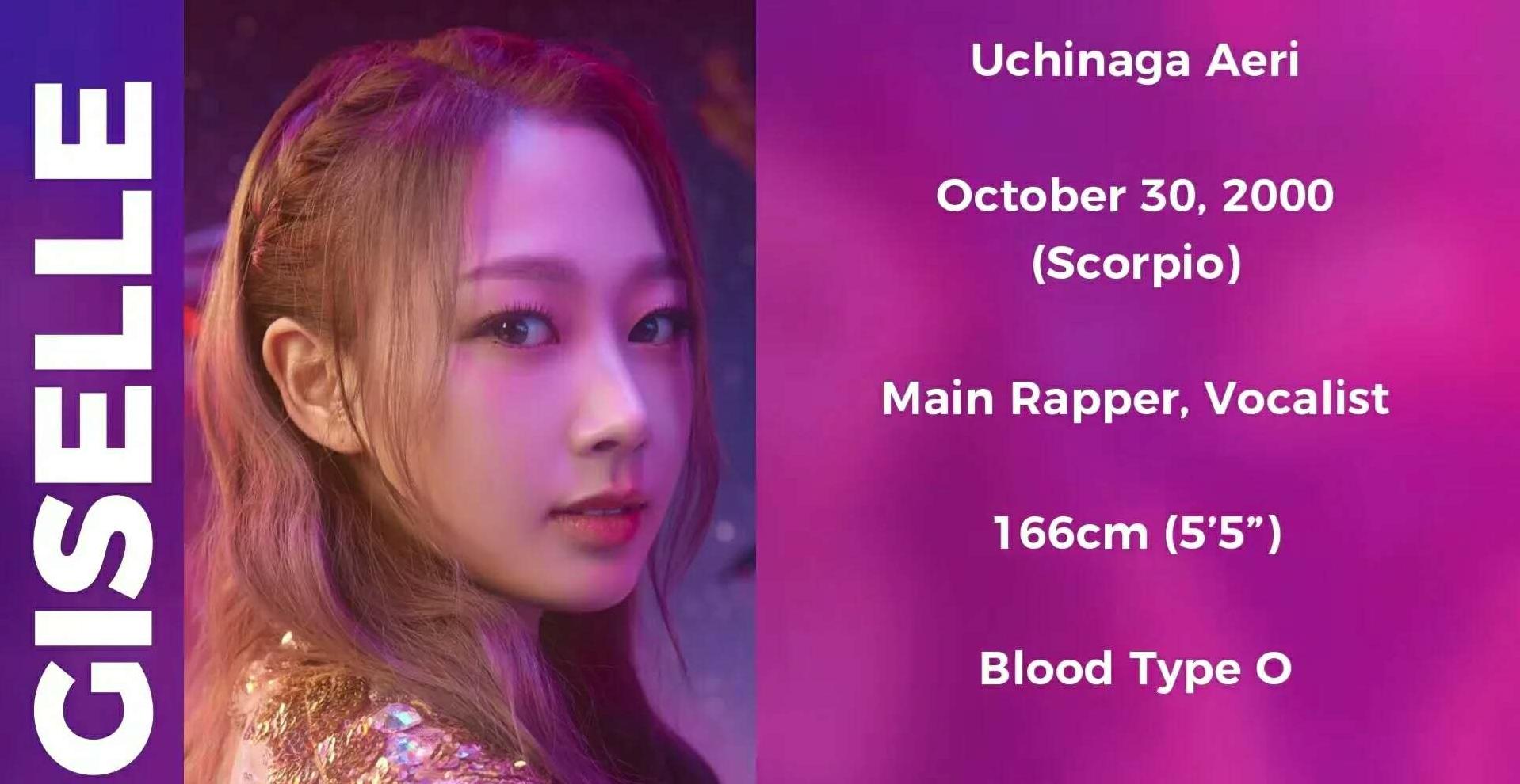 组合的日本成员GISELLE是目前组合话题度最低的成员,从她们的出道曲中GISELLE部分就能知道她是队内的rap担当,除了rap较好,她的嗓音也很不错,同时被选为组合的领唱。三位成员的官方定位出来了,还没有主唱,最后一位中国成员NINGNING就是组合的主唱。