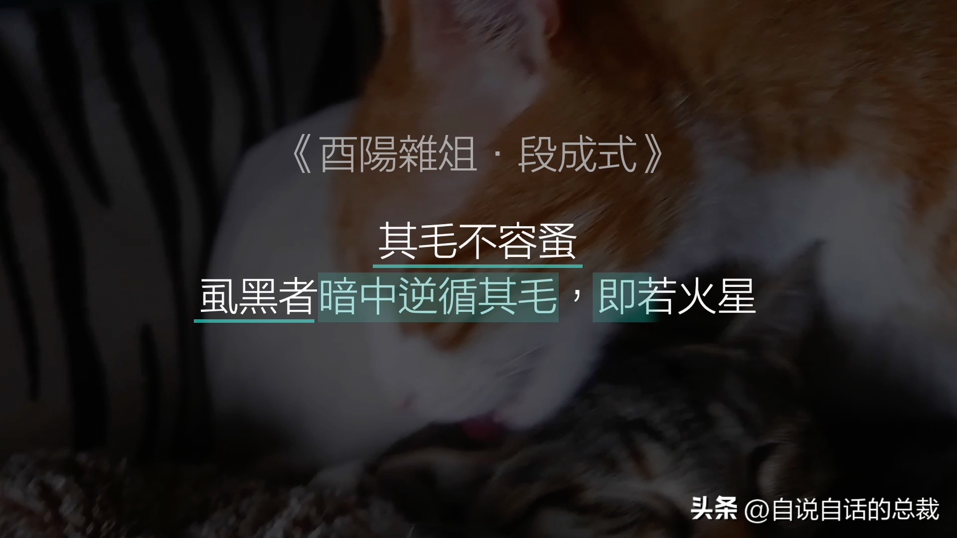 总之,段公子某天突然记载了这样一个有关猫咪的故事。 翻译过来就是说,猫,瞳孔很怪,日落以后,就会变成圆形,而晌午时分,则像一条线一样可怕。