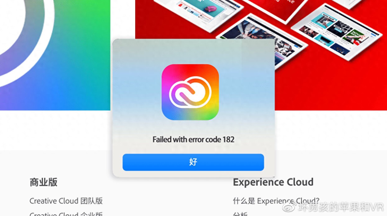 最近发现好多用户在安装Adobe的PS/AI/PR/AE软件的时候遇到出现错误代码182的错误,导致安装无法完成(如下图)