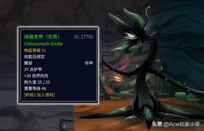 这是一件布甲的绿色腰带,虽然没有任何三维属性,但高额的自然抗加成让它成为了“极品”装备。这件装备也掉落自“锐刺鞭笞者”,可以跟树皮肩铠一起刷一下。