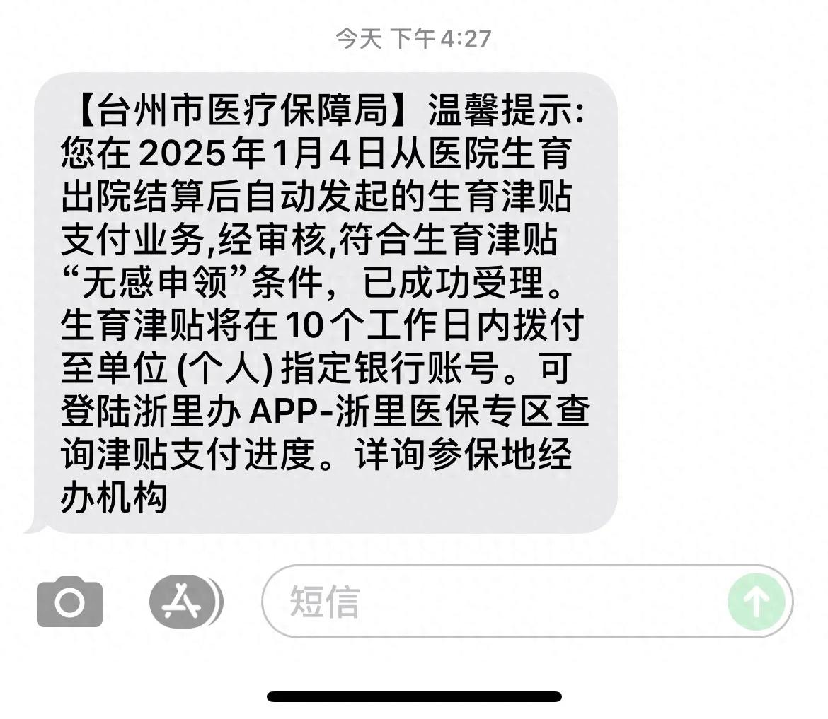 收到短信后过了一个礼拜,生育津贴就拨付下来了,高效便捷多了!