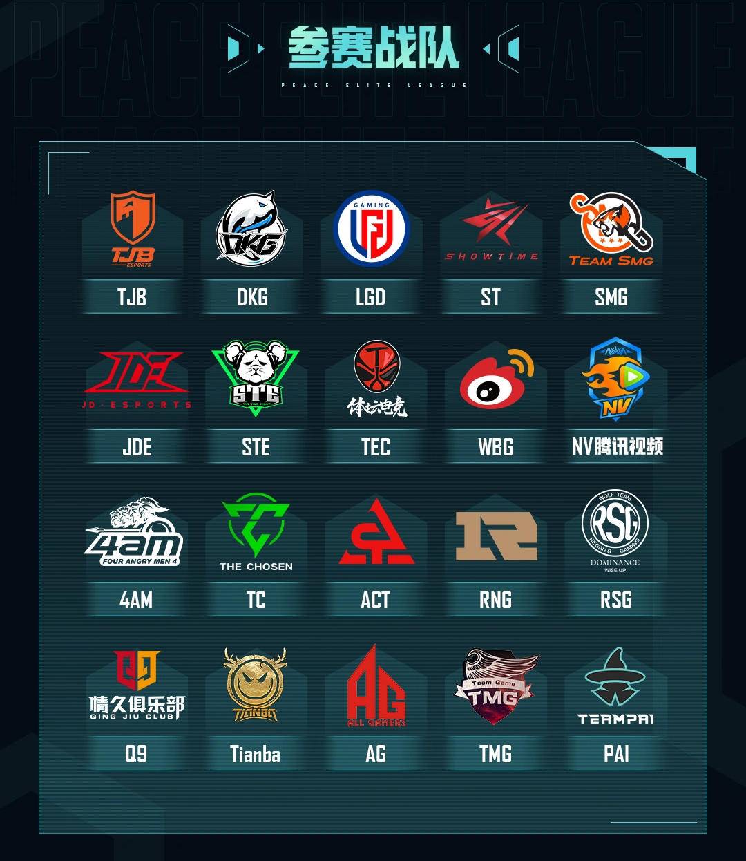 20支职业战队将在PEL 2021 S3赛季向着百万奖金与冠军荣誉发起冲击。他们之中既有PEL 2021 S2赛季冠亚军得主TJB战队、DKG战队,也有在年中转会期组建的银河战舰TC战队,更有经验丰富的老牌强队,顶级强队汇聚于此,强强对决再战巅峰。