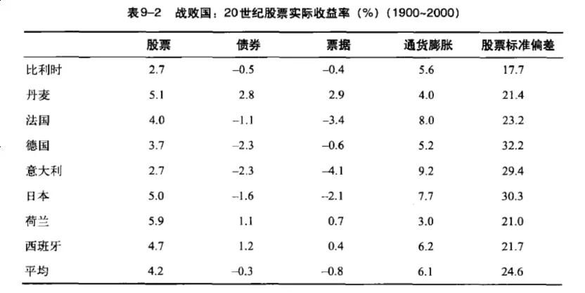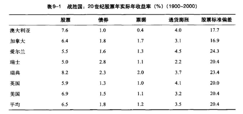 书中提到,耶鲁大学管理学院的威廉·戈兹曼和加州大学的菲利普·乔里昂曾发表过一篇题为《全球股市100年》的文章,专门研究了1921年以后股市有良好表现,同时又有通胀数据可查的国家。