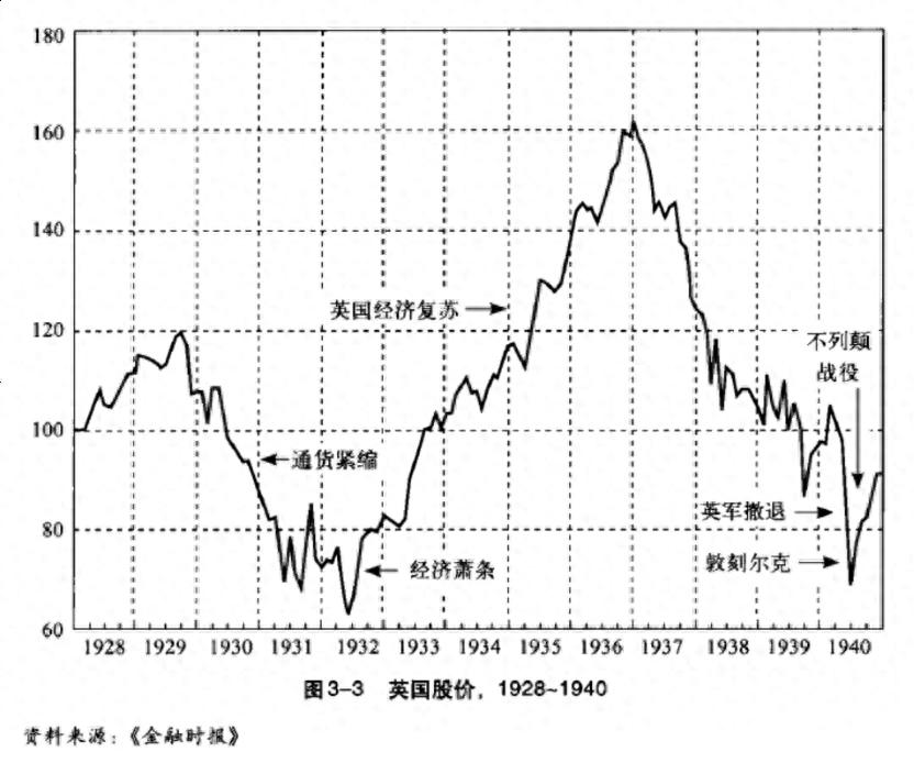 1940年6月,英国还笼罩在战争溃败的绝望之中,股票长期低迷,英军节节败退,直到敦刻尔克大撤退,伦敦股市跌入谷底。而德国随时有可能入侵英国,局势仍不明朗。